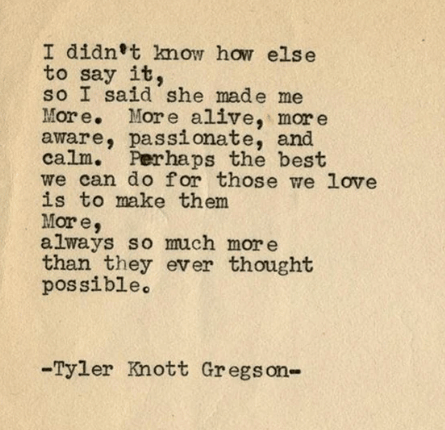 This one comes from Tyler Knott Gregson and is such an incredible way to live if you can choose to do so and act in this way. Not just for those you love but what if you could do this for all the friends, strangers, and people in your life?